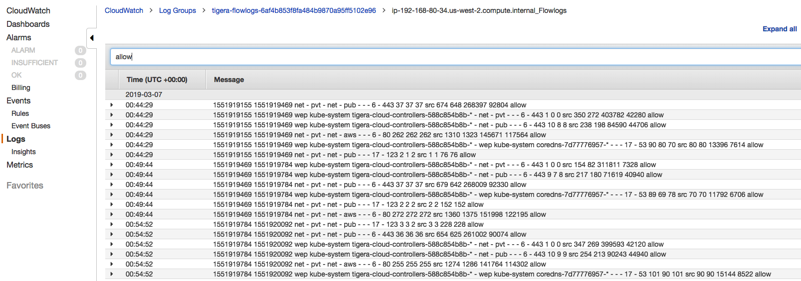 We’re assuming that you have run through both the Calico section of this tutorial and the first part of the TSCE section. If you skipped the Calico section, please go back and run through that as well, as we are relying on the synthetic applications used in the Calico examples to generate flowlogs in CloudWatch.
